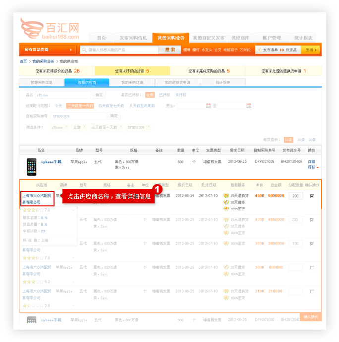 选择供应商及订单管理